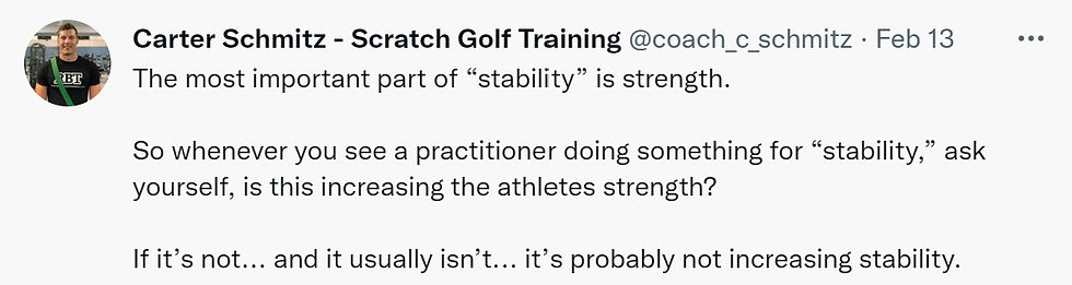 If there's a bosu ball, a light flimsy band, or a golf club involved... they more than likely aren't growing true stability.